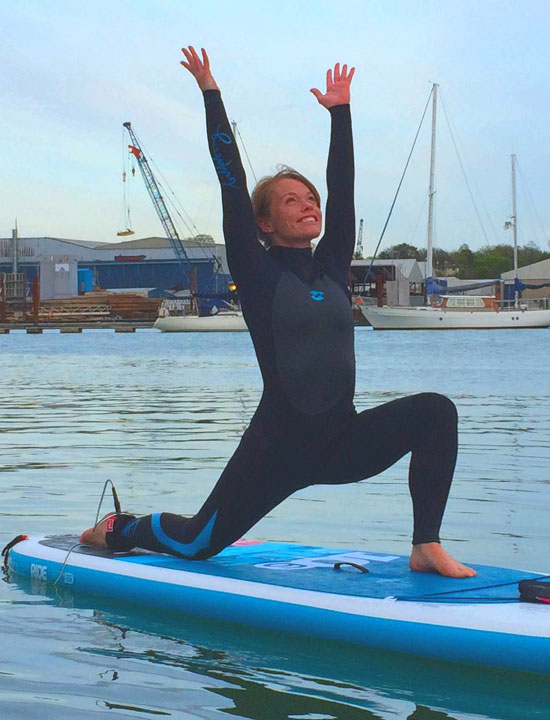 SUP Yoga. Life philosophy is "work hard, play hard", infectious smile and zest for life.