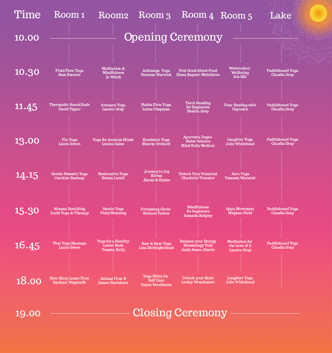 Spend the day learning from and being inspired by a wonderful selection of yoga teachers, healers and educators. Hover or Click on the pictures for more information.